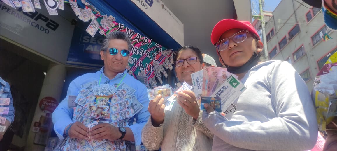 EMAPA se sumó a la tradicional festividad de las Alasitas 2026. En la sucursal de la entidad, el gerente general, Sergio Siles Sánchez, compartió con la población entregando los tradicionales billetes de Alasitas y souvenirs a quienes se dieron cita en el lugar.